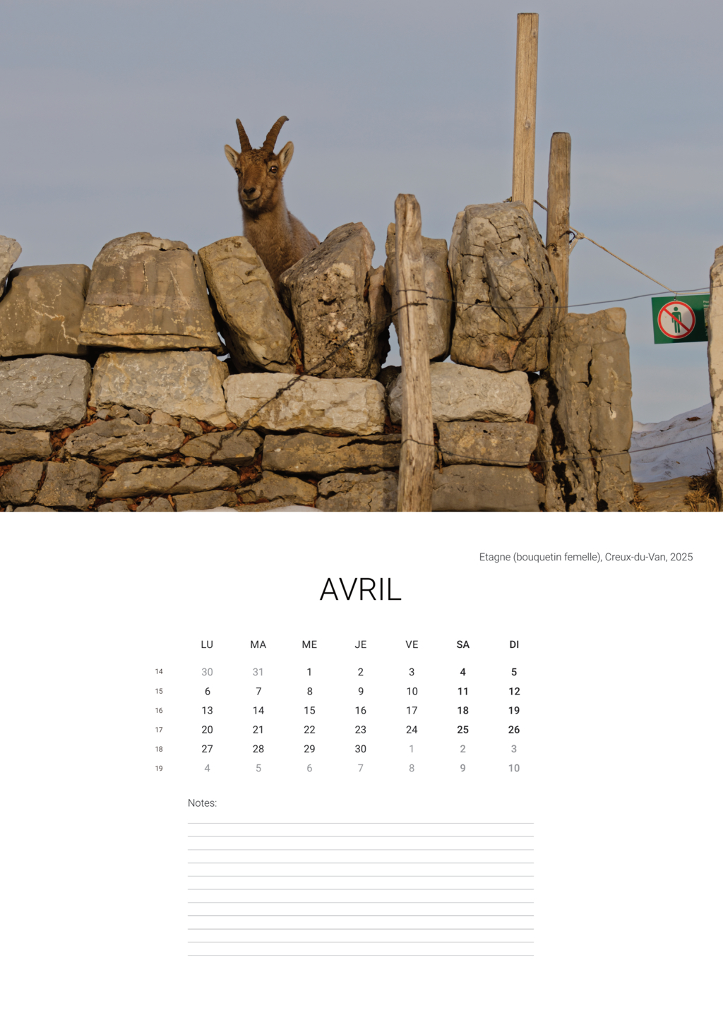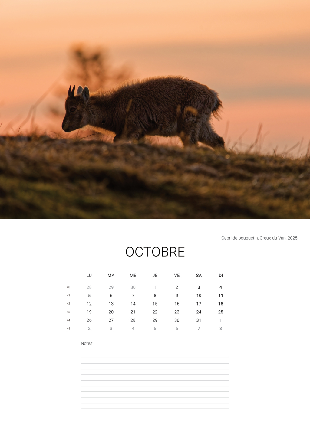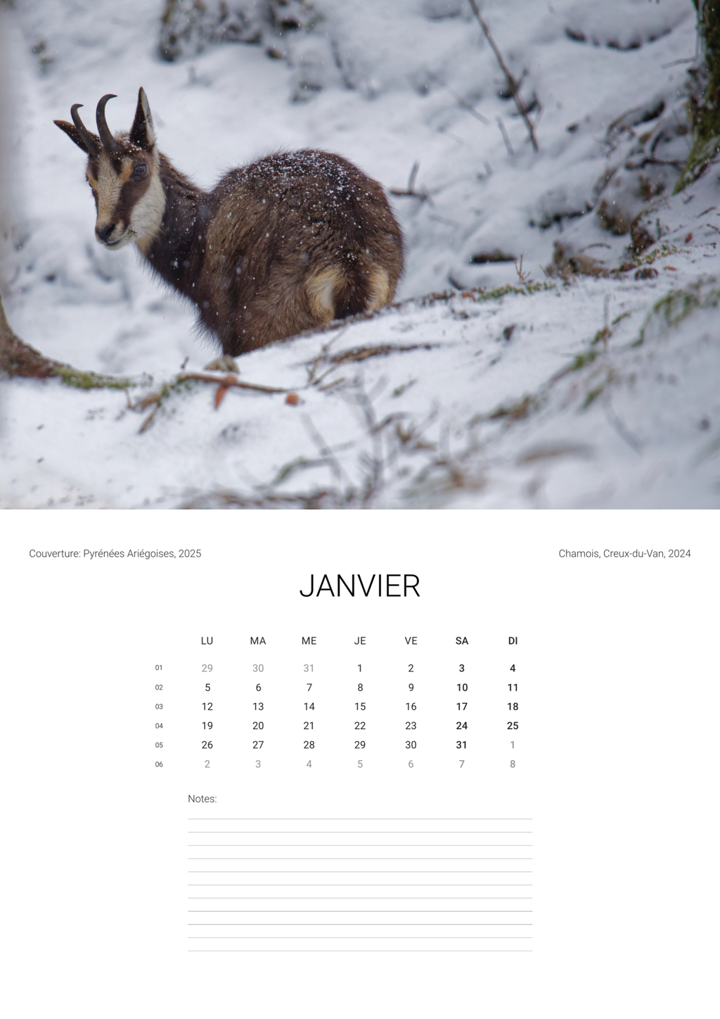 Discover the wildlife and landscapes of Switzerland and France with this 2026 calendar!