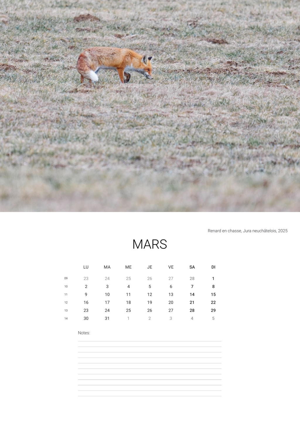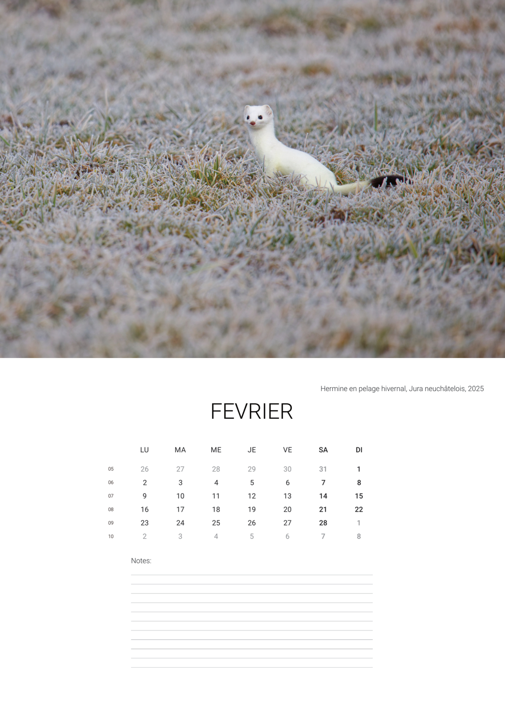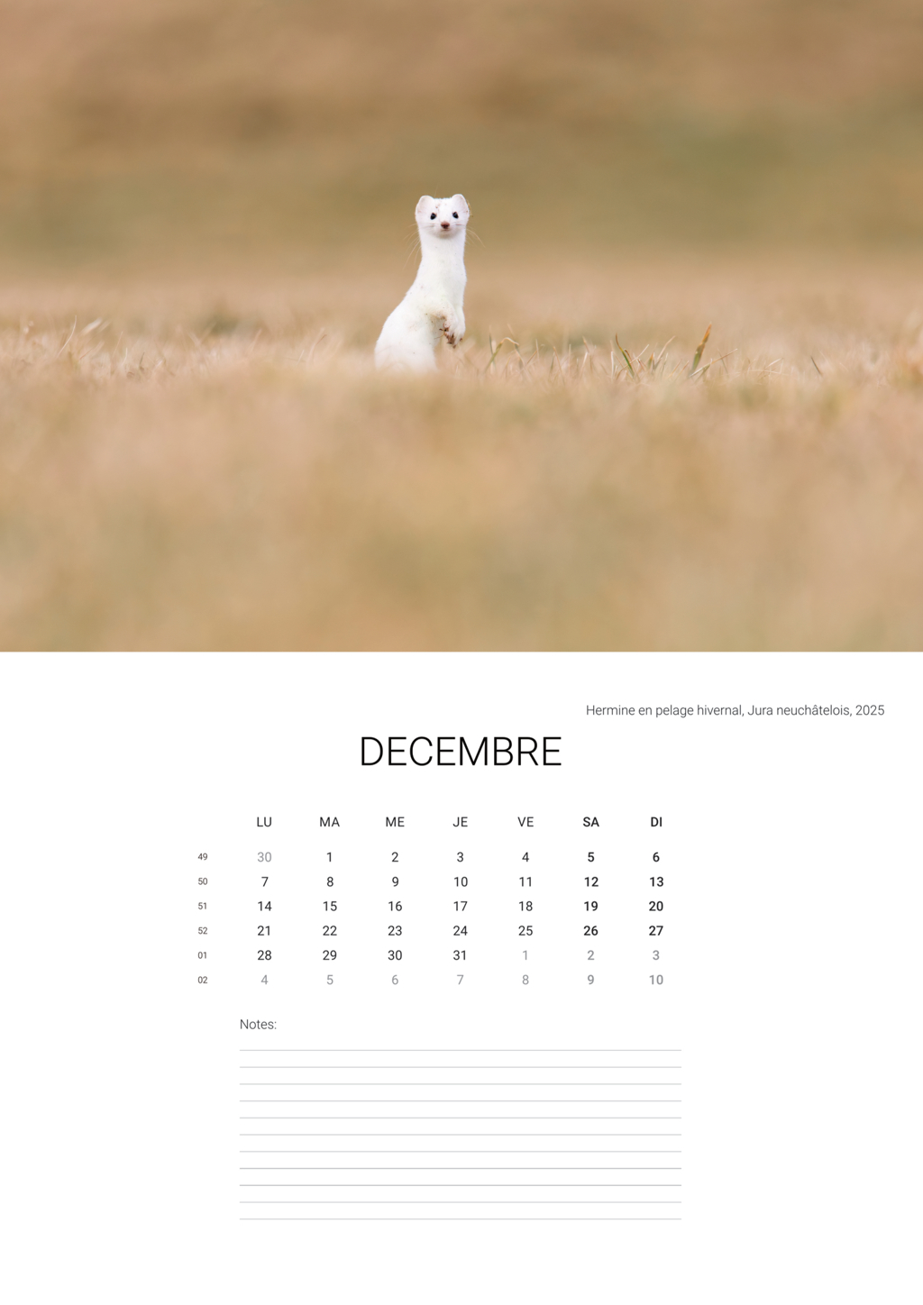 Discover the wildlife and landscapes of Switzerland and France with this 2026 calendar!