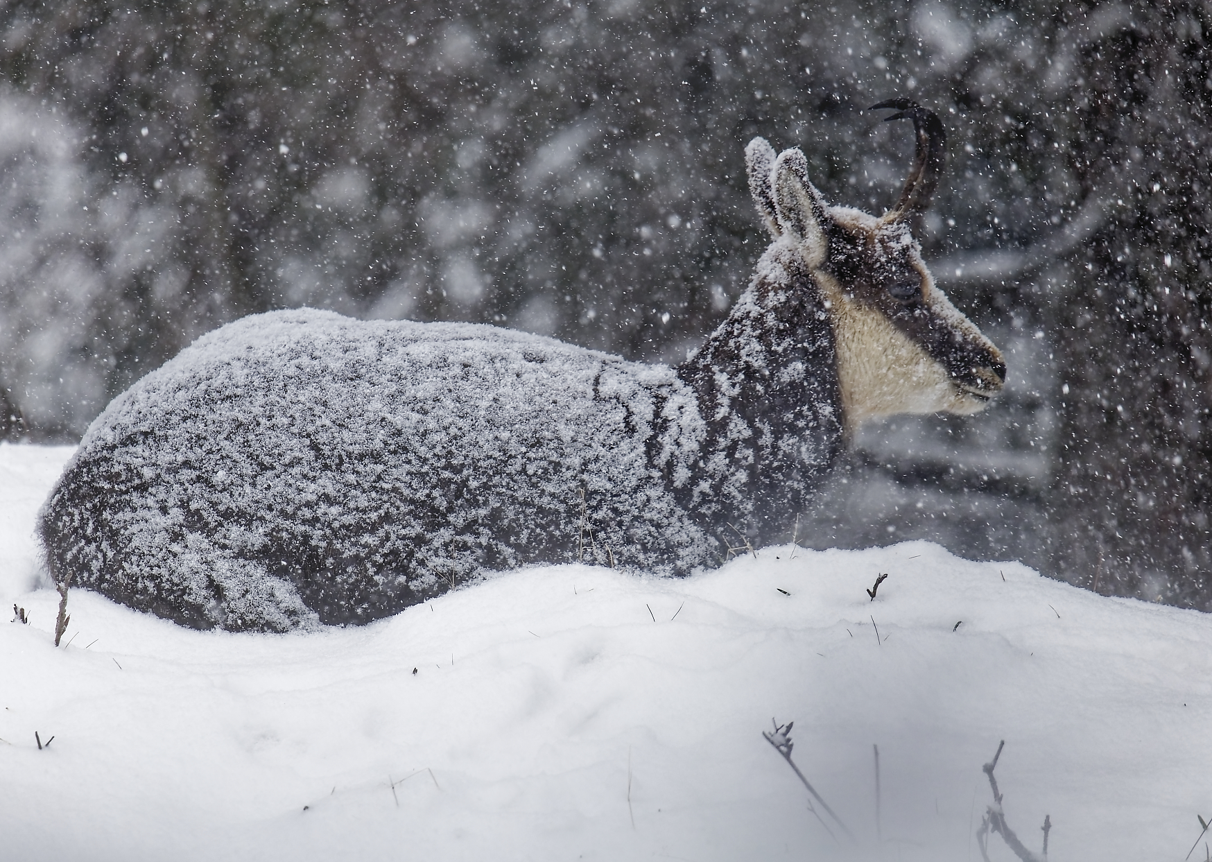 With just a few snowflakes missing, this chamois was as white as the ground.